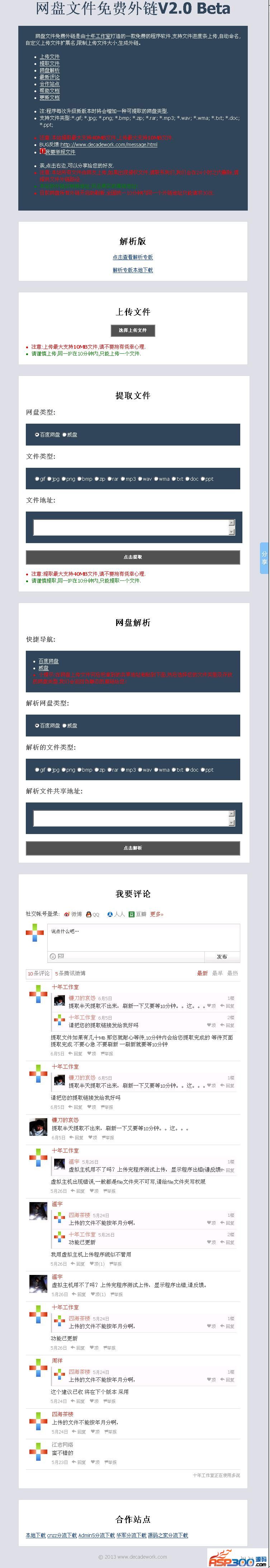 2.由于众多网友提出需要解析功能,本程序该版本已更新上,您只需把百度或者威盘的文件共享地址放到本程序,就拿到伪静态的直链地址,这个就是解析,文件存储在第三方,本程序