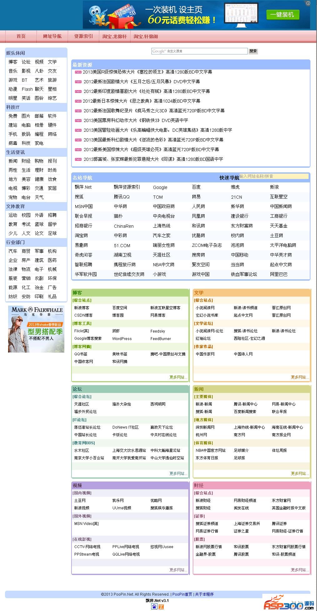 飘萍网址导航 (Asp.Net MVC4.0 + Access)