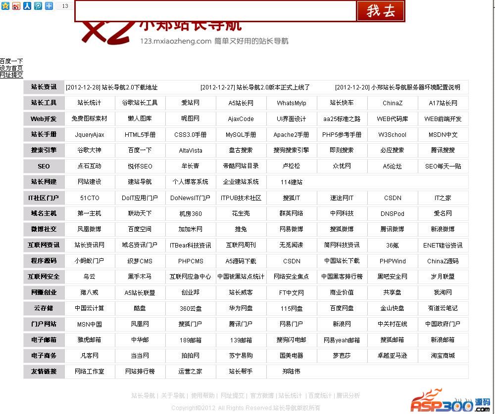 功能描述:本代码是一个站长网址导航和搜索功能,用户可以在后台任意添加自己需要的链接。