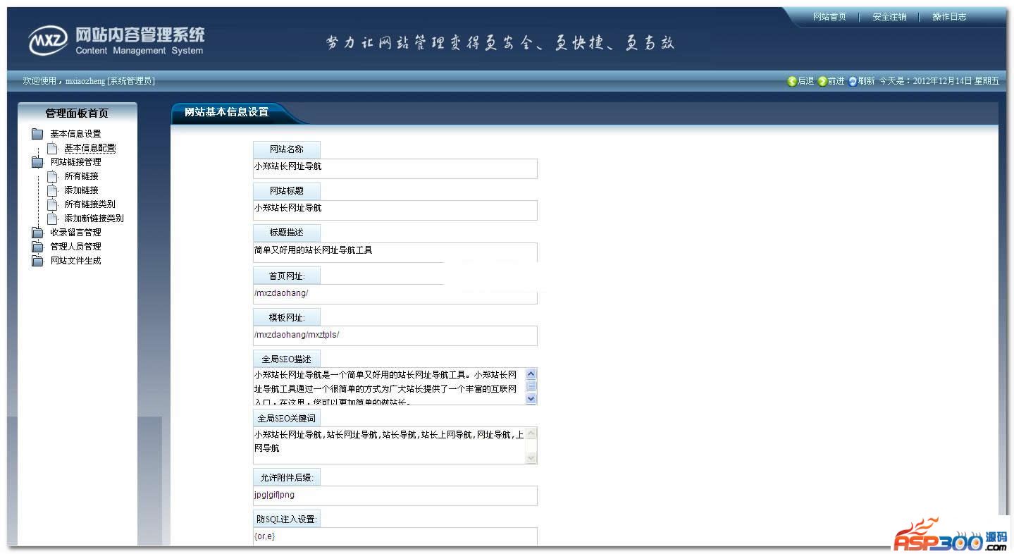 程序的后台路径是/mxzadmin/,后台登陆账号和密码均为:mxiaozheng