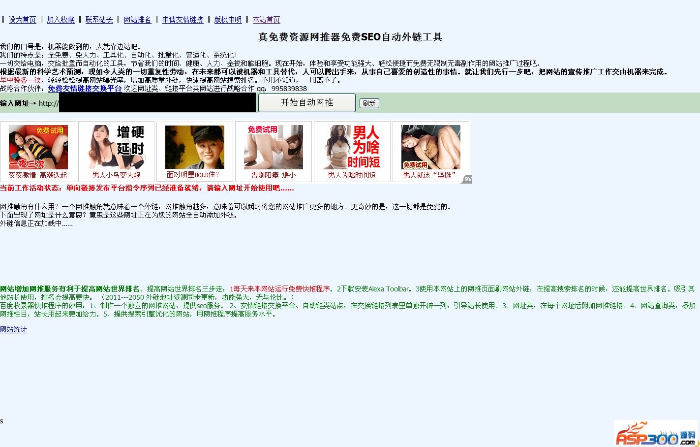 根据最新的科学艺术预测:现如今人类的一切重复性劳动,在未来都可以被机器和工具替代,人可以腾出手来,从事自己喜爱的创造性的事情。就让我们先行一步吧,把网站的宣传推广工作交由机器来完成。