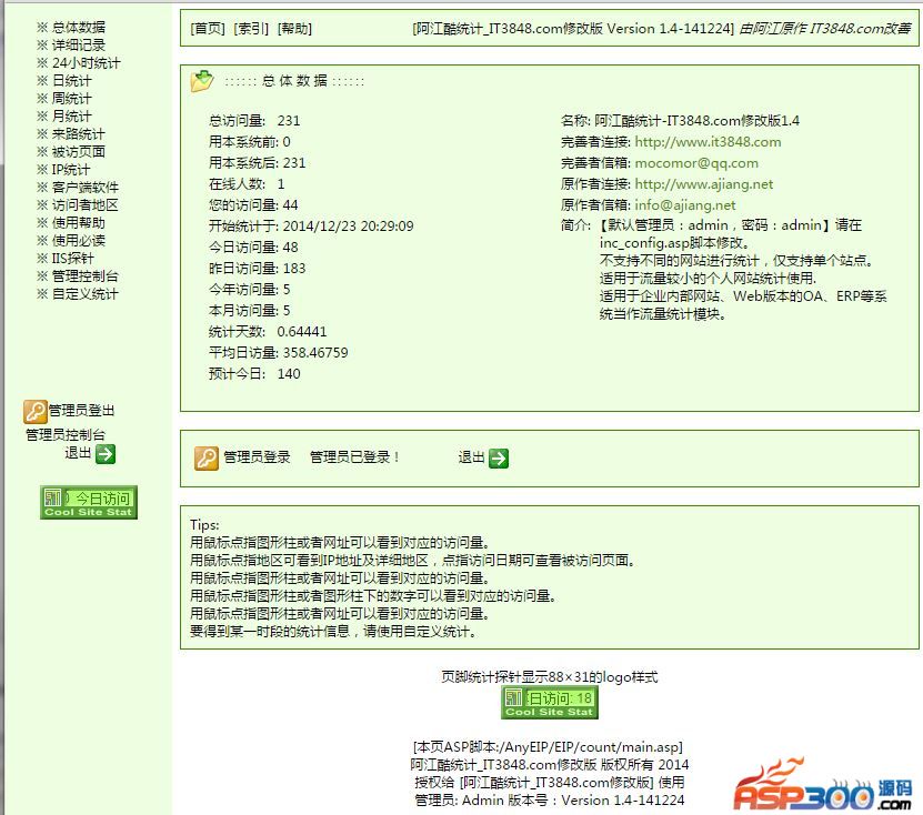 由阿江酷站访问统计系统 V1.3-020523改善的版本。