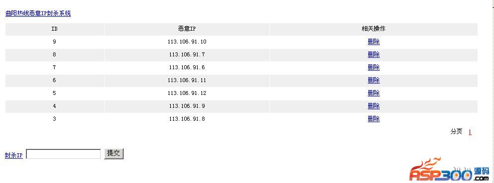 程序说明 fengiplist.asp 对垃圾IP进行添加删除