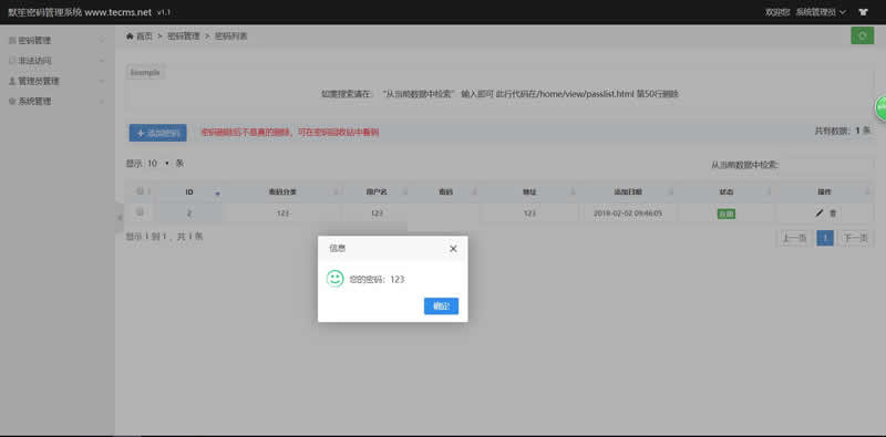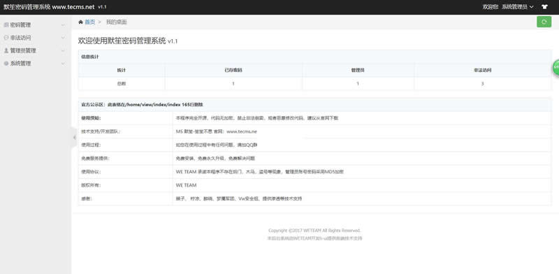 默笙密码管理系统源码是一款基于thinkphp二次开发而成的在线密码管理系统,继承thinkphp优秀的开源及扩展能力,能够方便、快速的进行深层次开发扩展!
