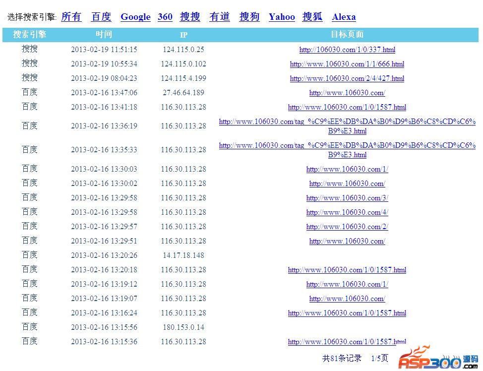 蜘蛛监控工具,通过安装蜘蛛监控工具,可以分析搜索引擎蜘蛛的访问次数、访问时间、及访问页面等,支持的国内所有搜索引擎