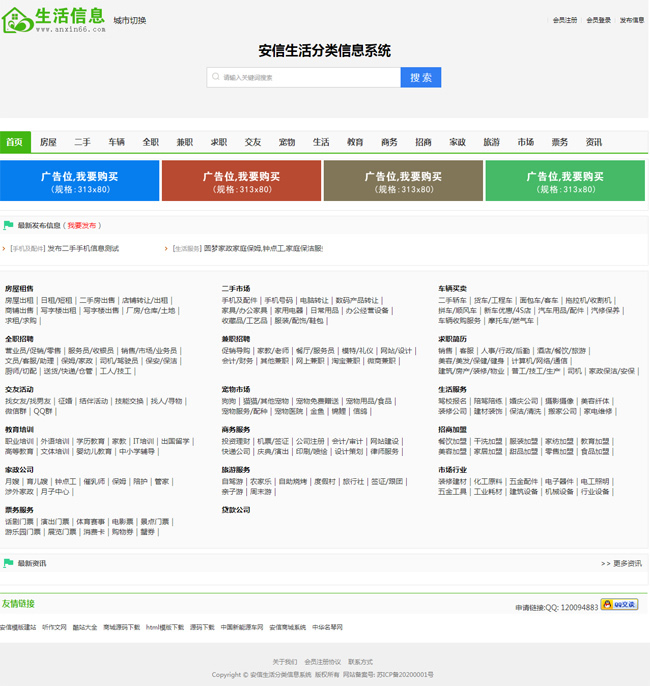 安信同城地方门户系统(分类信息版本)适用于创建地方生活信息发布平台。系统主要收益模式采用信息发布收费模式和信息刷新收费模式,以及主页面大量广告块自助申请的收费方式。