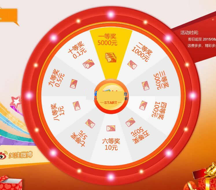 4.可以设置中奖率 管理员可自行在后台设置每个奖品的中奖率,分100分制,1000分制,10000分制。