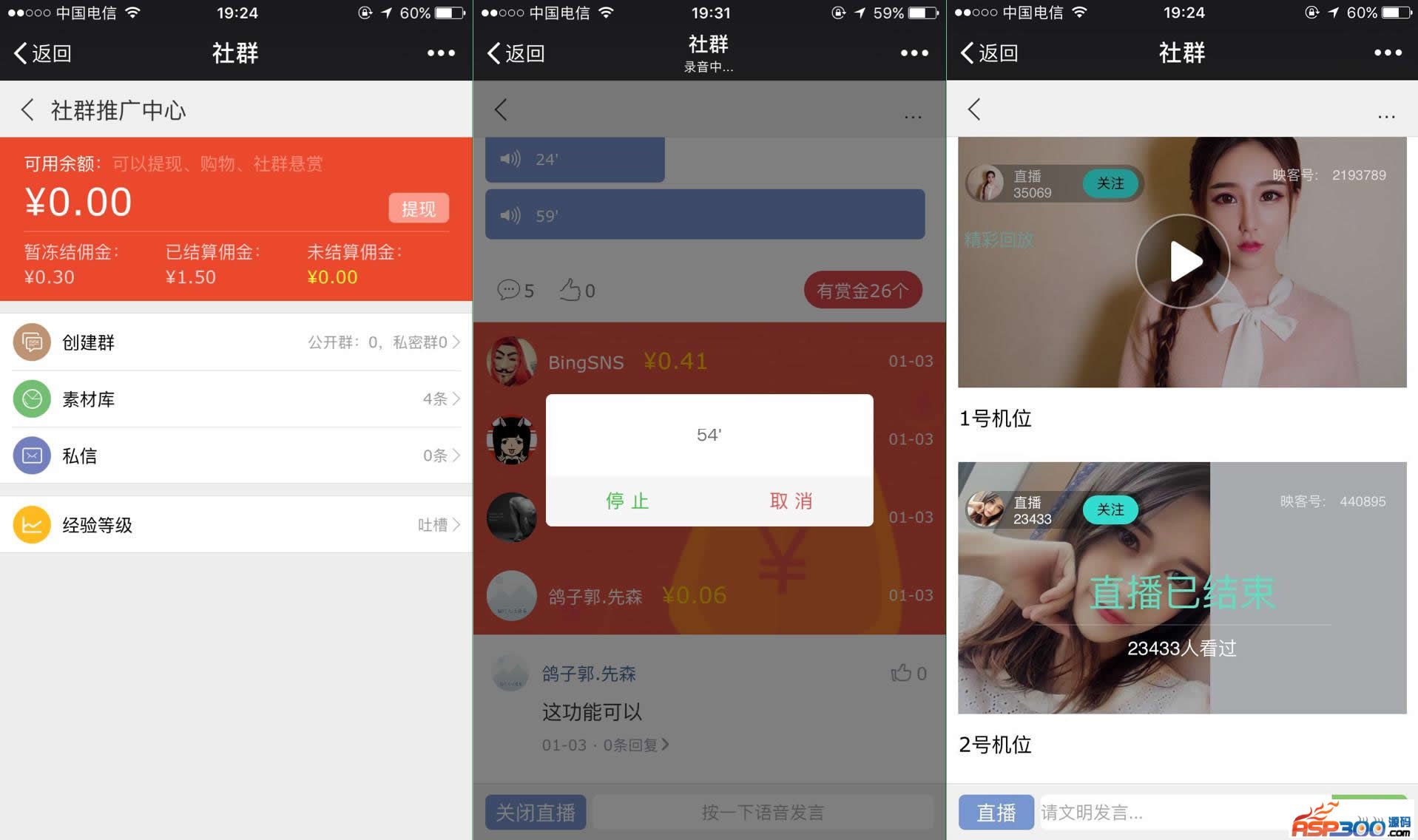 3.在群互动中,群主可以发起语音直播、视频直播(绑定映客)邀请群员一起参与互动,群主也可主动向群员发起实时推送通知,群员也可以主动向下级群员发起实时推送通知,通知内容同群贴一样,可以植入收款、商品购买、活动、悬赏等等……。