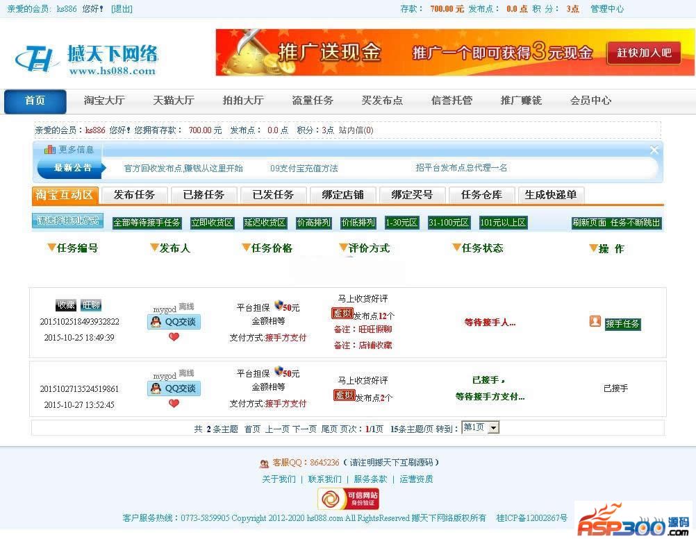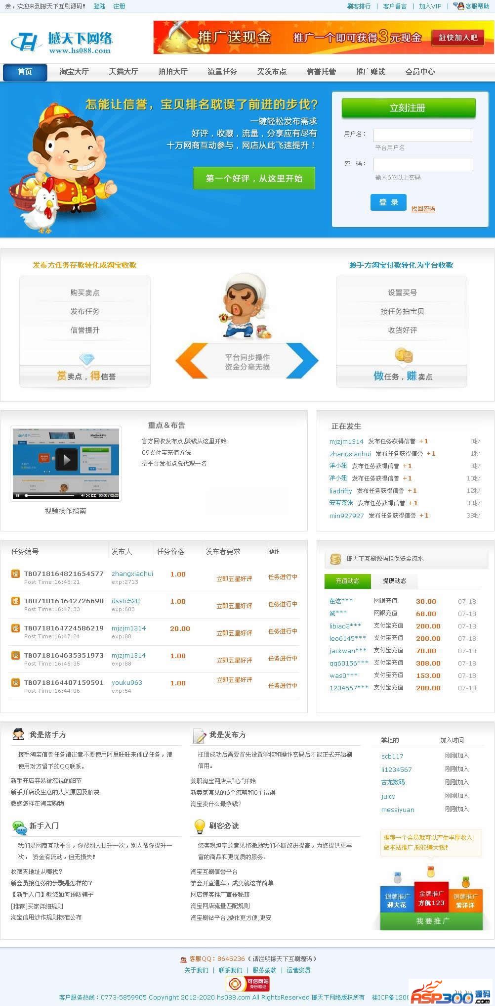 淘宝互刷单信誉网站源码是一个在GBK环境中进行开发的淘宝互刷平台,软件采用asp+access进行开发。
