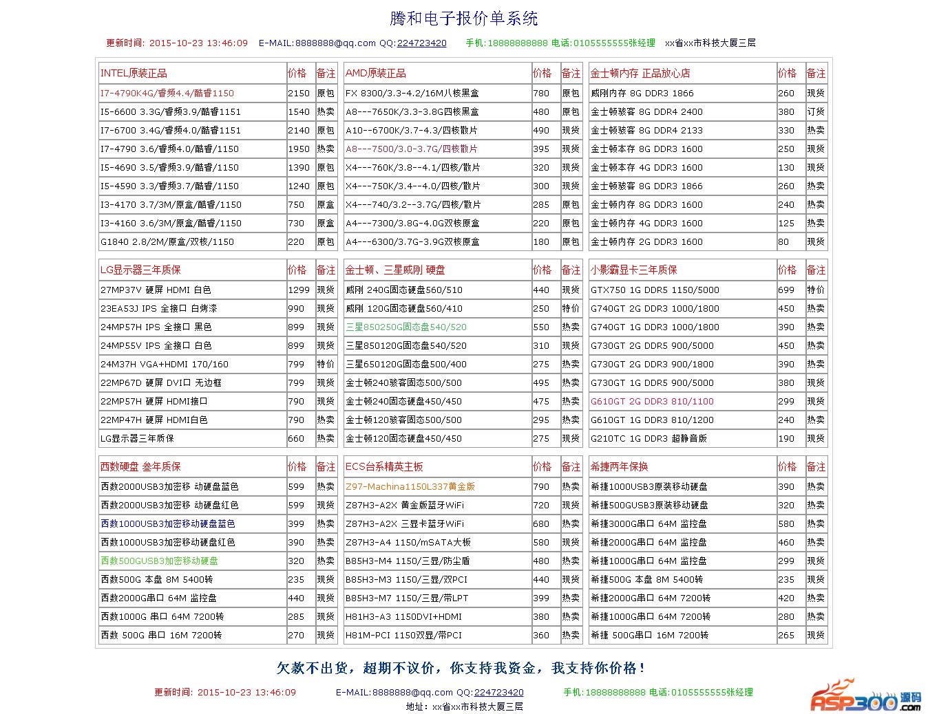 腾和电子产品报价单系统主要用于代理商给零售商报价使用。电子产品更新换代很快,价格波动频繁,用Excel手动更新太麻烦,用本程序代替Excel使用更方便快捷。该程序基于ASP+ACCESS环境开发。