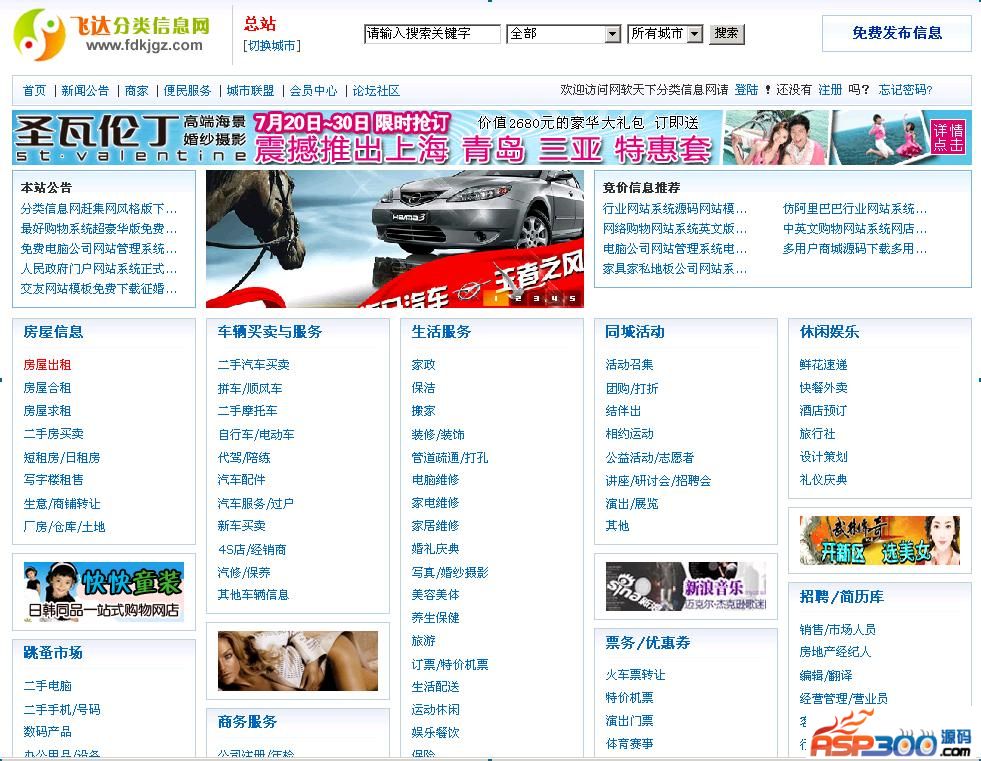 asp版分类信息网站演示:http://flsql2032.wrtx.cn