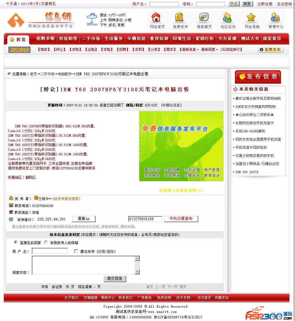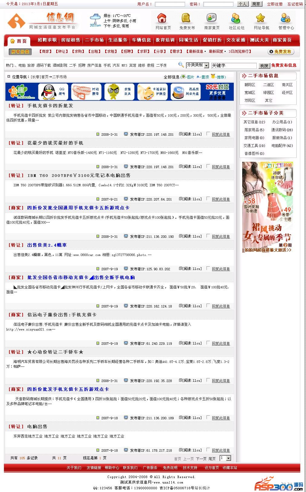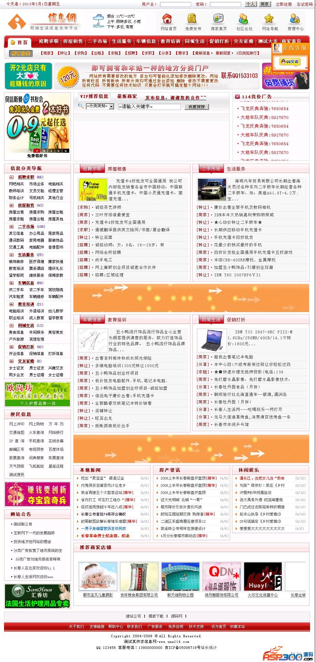 源码介绍:后台测试完整,程序还不错,可以做个地方信息生活站。