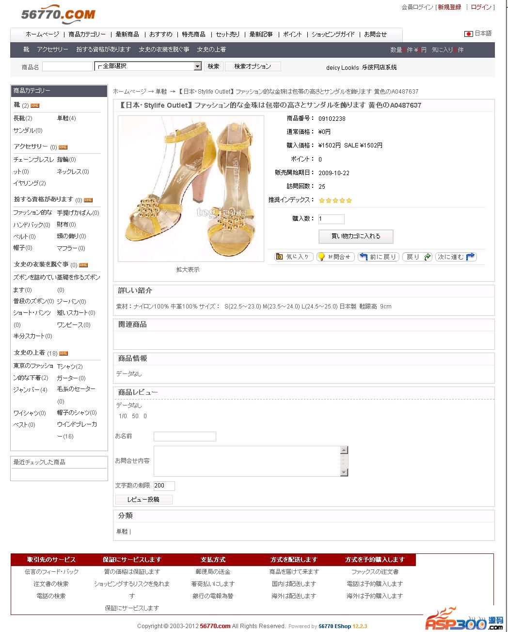 日文网店系统(56770 EShop)是一款基于Web浏览器和客户端技术的网上开店软件,它把浏览器、客户端和服务器这三种技术无缝结合为一体,界面灵活,功能强大,后台更是和服务器一样稳定、安全、可靠。