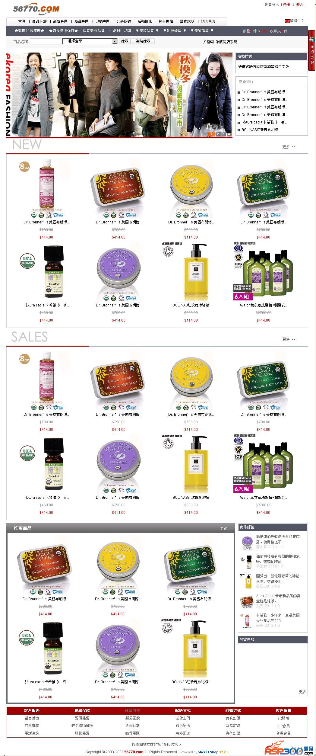 网上开店系统(56770 Eshop)是一款基于Web浏览器和客户端技术的网上开店软件,它把浏览器、客户端和服务器这三种技术无缝结合为一体,界面灵活,功能强大,后台更是和服务器一样稳定、安全、可靠。