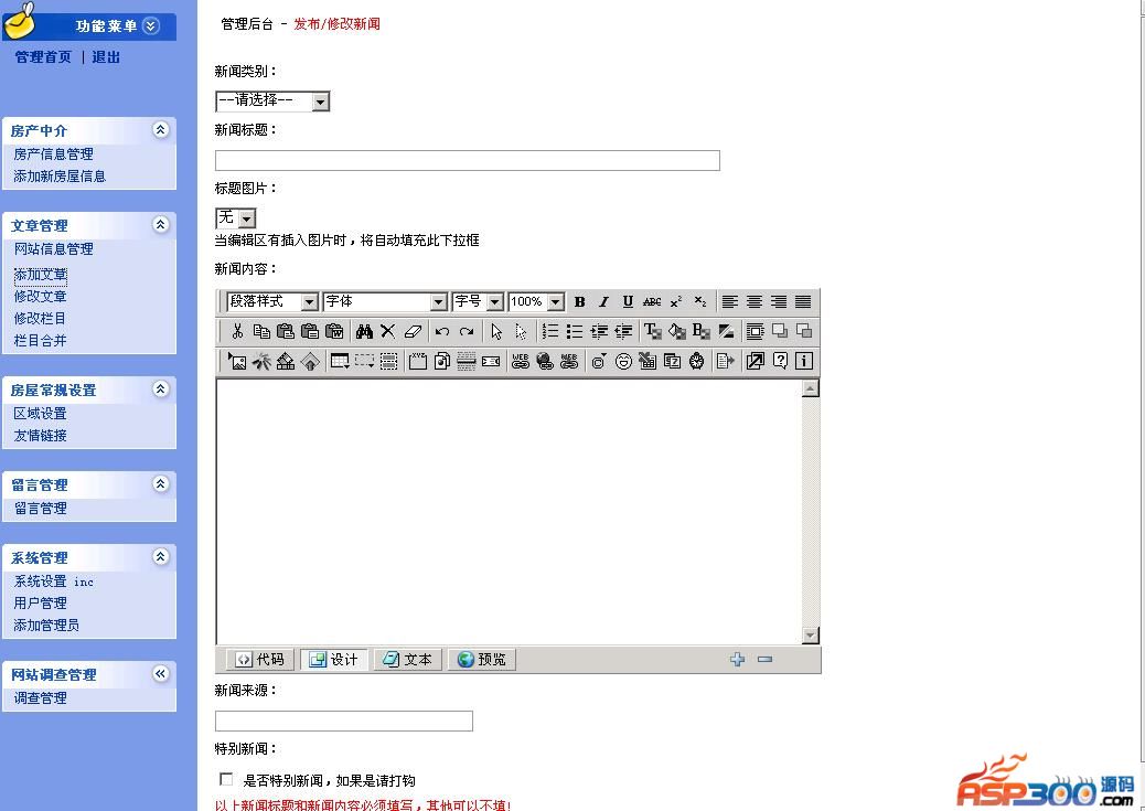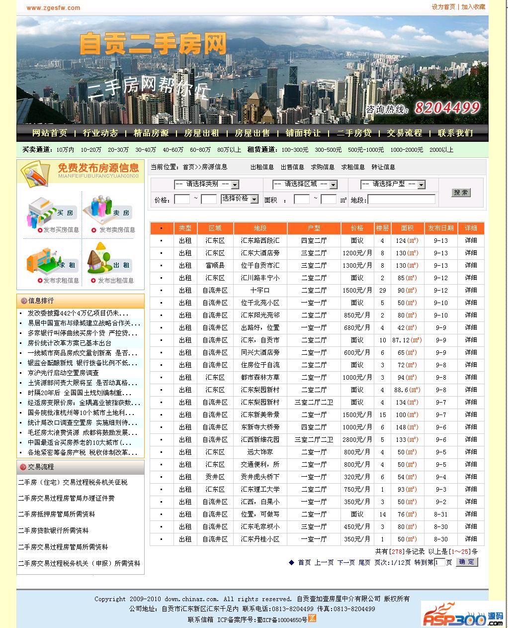 自贡二手房房产系统,程序基于ASP+ACC制作,完全无错。带房产系统,发布系统,会员管理系统,文章系统等,非常适合新手学习使用。