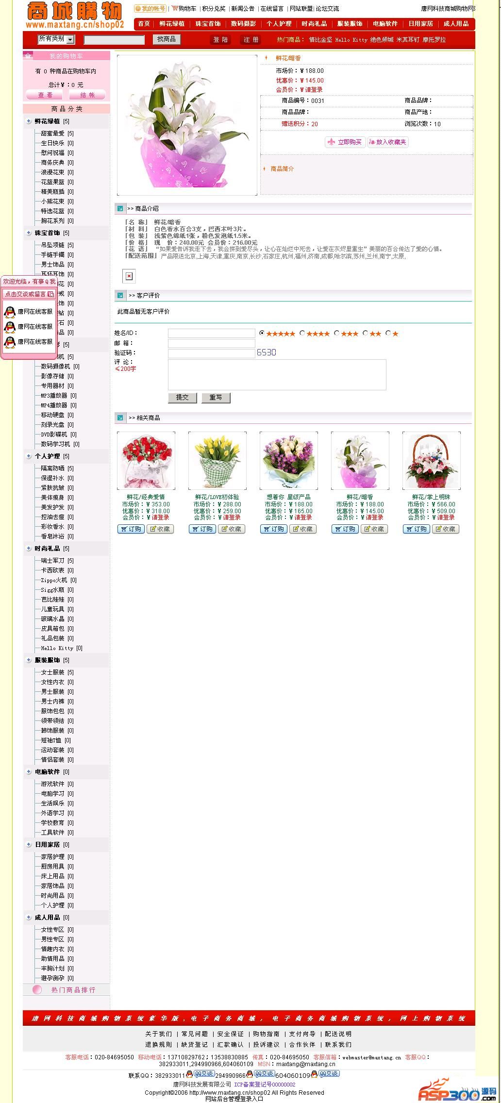 电子商务购物网站自助建站管理系统豪华正式版只要会打字就可以快速建立自己的电子商务网站,唐网网络商城购物网站管理系统正式版,由致力于电子商务购物网站管理系统的http://www.maxtang.cn/shop02开发,助从事电子商务,网上销售购物的创业者成功.适合电脑,软件,网络,办公设备,笔记本电脑,专用配件,手机,通讯设备,卡,移动联通充值中心,IP长途,数码相机,摄像机,图形冲印,随身视听,音响,耳机,运动,健身,运动明星,乐器,军品电子商务商城购物系统,旅游,机票,网络游戏虚拟商品交易区,电玩,动漫,Cosplay,周边,居家日用,装饰,文具,园艺,邮币,古董,字画,收藏,汽车,摩托,自行车,家庭装修,五金工具网上购物系统,在线购物系统,购物系统,安防报警,个性定制,淘宝卖家服务,珠宝首饰,流行饰品,珠宝配件购物软件,电子商务购物,电子商务商城购物,品牌手表,流行手表,眼镜,彩妆,香水,护肤,美体,女士箱包,鞋帽,配件,女装,女士精品,男装,服饰配件,家用电器电子商务网站商城购物,电子购物系统,购物车系统,保健器械,男士精品,ZIPPO,瑞士军刀,玩具,模型,卡通产品,书籍,杂志,报纸,宠物,宠物食品及用品asp购物系统,虚拟购物系统,购物平台,音乐,影视,明星,娱乐,避孕用品,情趣内衣购物系统下载,购物软件下载的网上创业者自助建站。电子商务购物网站管理系统是基于WEB开发的大型购物系统,它以构建电子商务网站为目标,由前台购物、后台管理、在线支付三大部分组成,各大部分完美结合,都有着最为完善和强大的功能,最大限度的满足客户在线购物和网站管理员管理的需求.系统满足各个级别用户购建电子商务平台的需要,是构建各种大中小电子商务购物网站的首选系统!不需要专门编程,半天便能建立门户级专业电子商务购物网站.购物系统轻松管理维护,经济效率实实在在看得见.如不会本机调试本系统,请查看《IIS安装使用说明书》