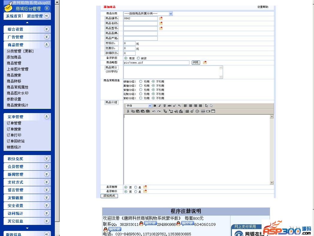 电子商务购物网站自助建站管理系统豪华正式版后台功能描述: