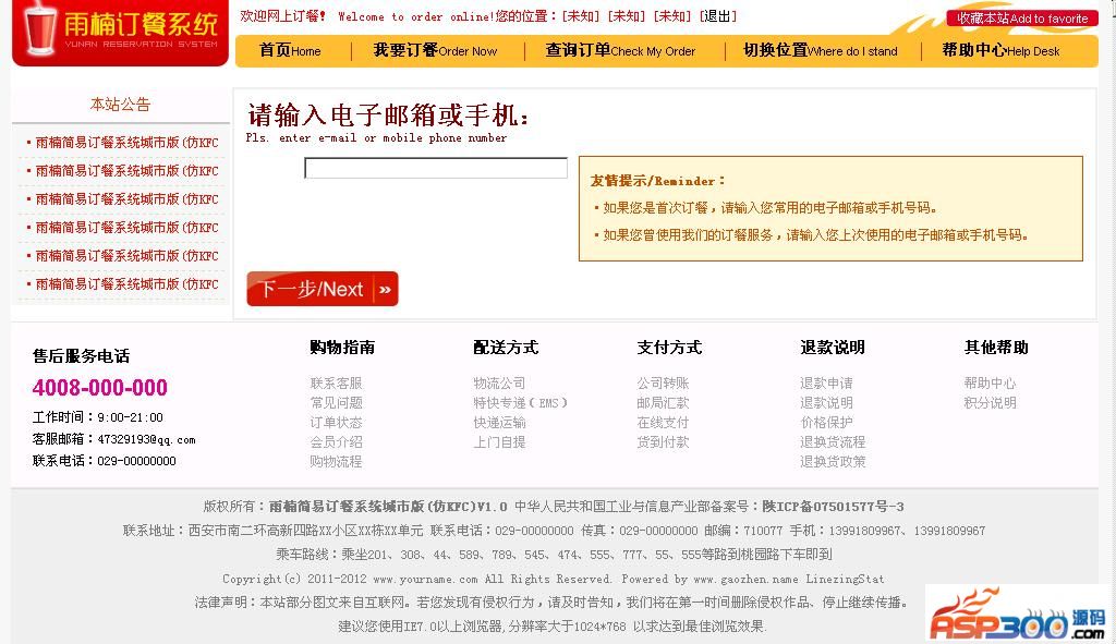 雨楠简易订餐系统区自选版(仿KFC)V2.0