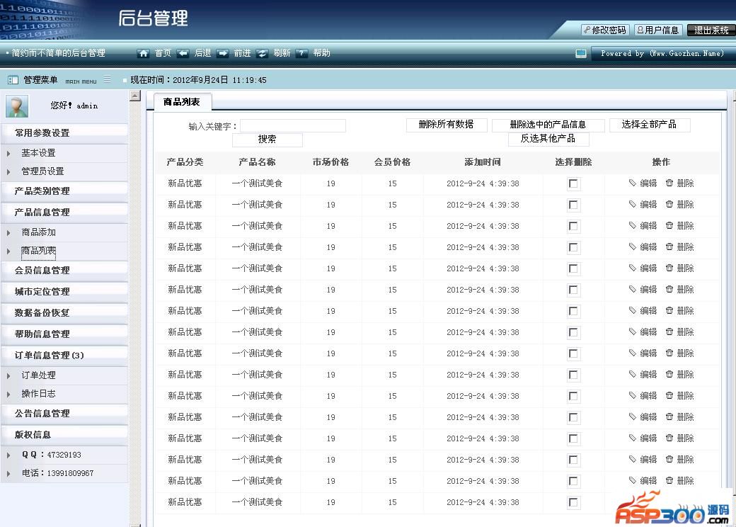 数据库备份、订单查看、发布公告、管理员管理(代理商也在此管理)