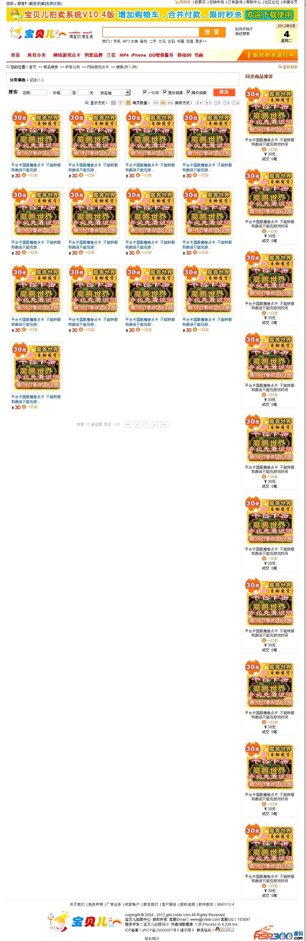 宝贝儿拍卖系统BBRv11.0版于2013年8月19日正式发布,详情请登陆http://www.cnbbr.com