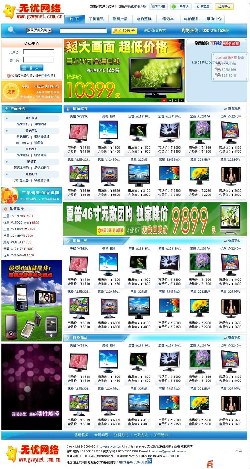新品上架、推荐商品、特价商品显示图文并茂,附有价格显示,让浏览者一目了然。