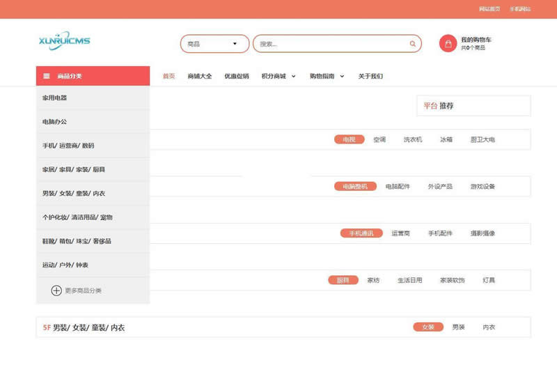 迅睿MALL开源商城系统是一套完善的B2B2C(多店铺商城)解决方案。系统使用国外优秀开源框架codeigniter4,H5端采用bootstrap,前后端分离,基于PHP7+MySQL开发,采用B/S架构,依据10年电商经验打造出的一套开源的B2B2C电子商务系统。