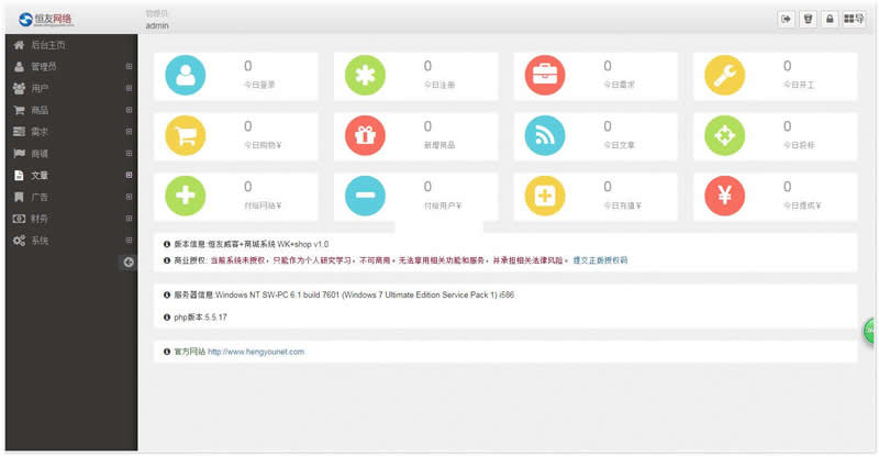 恒友网络威客+商城系统 (WK+shop) 基于PHP+MySQL的技术,采用ThinkPHP5.0框架开发。WK+shop是威客任务系统与多商家商城系统结合,即可以接任务赚钱发任务找人帮忙,也可以购物开店赚钱.网站前台和后台手机操作一样流畅。