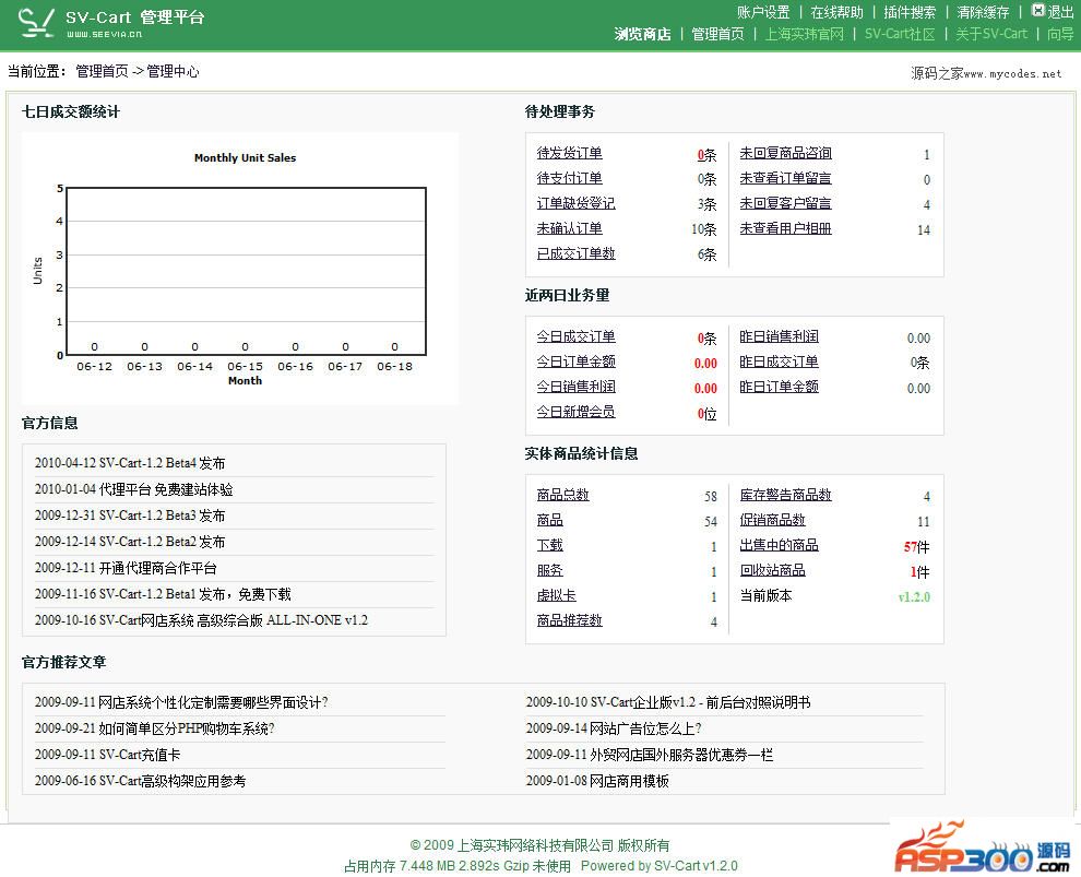 SV-Cart 1.2 beta4 更新日志:•修正品牌管理,显示品牌LOGO的同时显示品牌名称的问题•修正虚拟卡管理,新增或编辑虚拟卡时,跳出乱码的问题•修正商品管理,无法上传商品图片的问题•修正商品管理,商品无法正常编辑的问题•修正邮件地址,发送测试邮件后弹出报错的问题•修正联系我们,网页不存在的问题•修正点击平台右上角的在线帮助,跳出乱码的问题•修正点击平台右上角的google翻译功能无法正常使用的问题