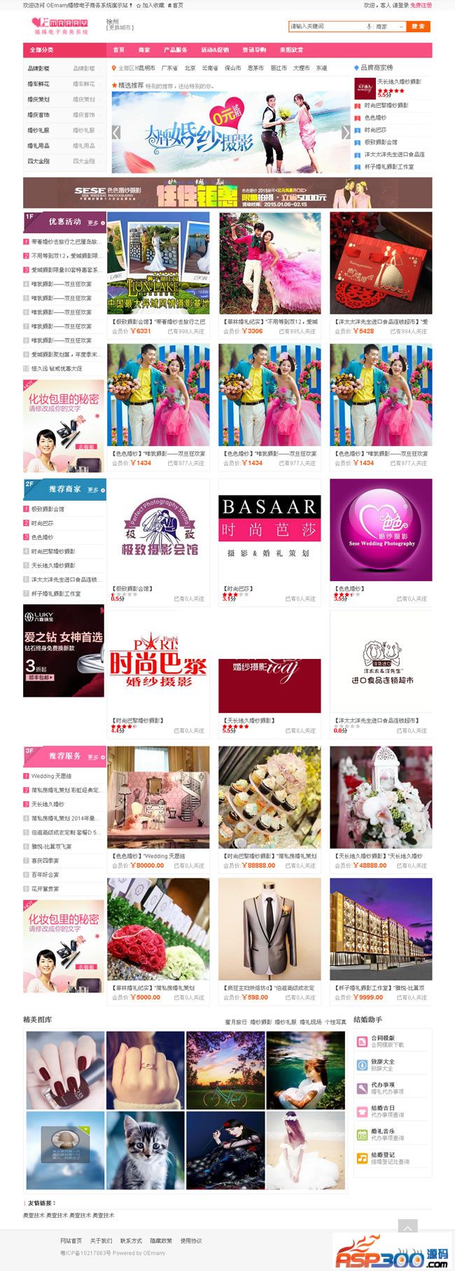 OEmarry婚庆商家电子商务网站系统(又名:OEmarry婚嫁O2O电商平台系统)是O.E研发团队继OElove婚恋网站产品发布之后经长期的深入调研策划后,根据婚庆行业客户实际应用需求而提供的一套以满足企业级(OEPHP MVC架构)大型数据架构及大规模运营需求的解决方案,该系统的集商家展示点评、O2O团购、垂直搜索、分类导行、本地信息、优惠券、商家活动、在线购物、微信营销、广告管理、手机app等功能模块,帮助网站运营商针对婚恋、婚纱摄影、酒店预订、餐饮、租车、旅游、礼品、策划等婚庆各类服务商家提供商户广告、平台入驻、信息展示、发布商品、发布活动、在线交易等平台服务。