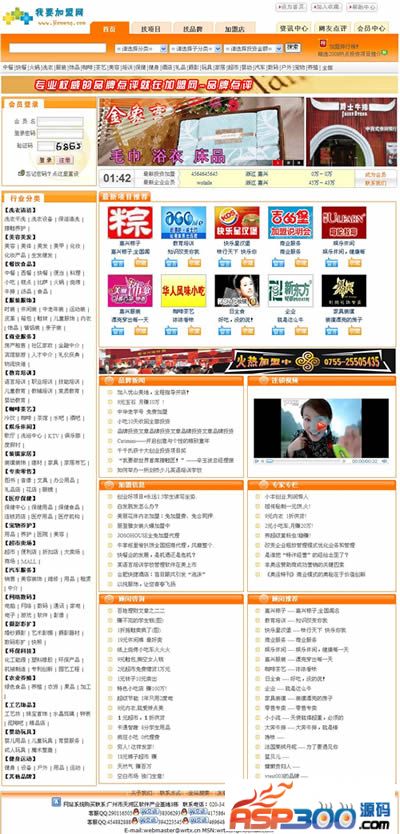 1、网站首页 – 预设了会员登录、行业分类、轮播广告、最新项目推荐、品牌新闻、视频、加盟资讯、顾问咨询等板块,也可以自行增设或调整板块。