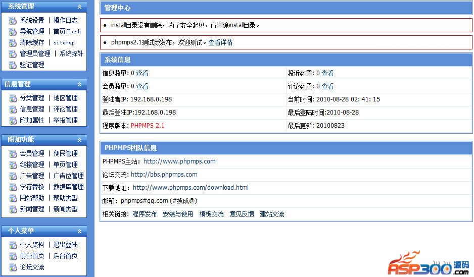 Phpmps v2.3本版主要是错误的修复和垃圾信息的防护,用户可以在后台开启注册用户才能发布信息,注册用户需要审核。下一个版本将有比较大的架构变动。