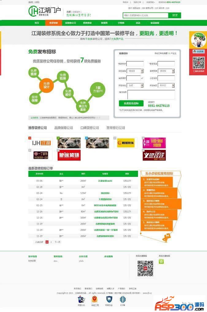 IJH江湖家居装修门户系统是一套家居O2O系统,全站seo,适合做家居垂直领域网站使用。网站主要栏目包括:我要装修(装修招标)、找装修(公司、设计师等、优惠信息)、我搜我家(小区、楼盘)、效果图、学装修(装修日记、问答、课堂)、活动、家居商城等,站点还支持手机浏览系统要求:建议使用linux(PHP 5.2以上版本环境使用) 需数据库:MYSQL5.1及以上版本详情查看官方:点击查看适用范围:IJH江湖家居装修门户系统,O2O家居系统,家居门户,装修门户,装修公司