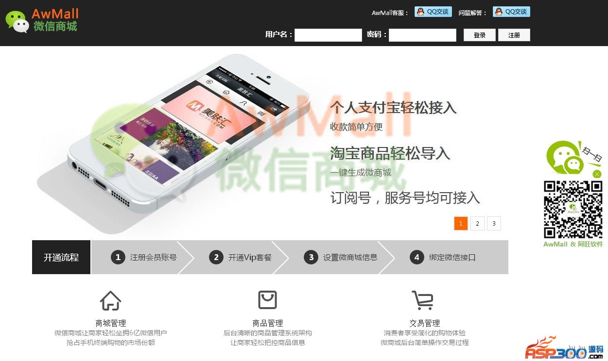 介绍:PHP+MYSQL开发的多用户微信商城系统,会员主要功能模块包括:商铺设置、商品管理、订单管理、商城模版设置、支付方式管理等,新增商品支持淘宝导入、微信关注自动回复、关键词自动回复、消息自动回复、自定义菜单等。
