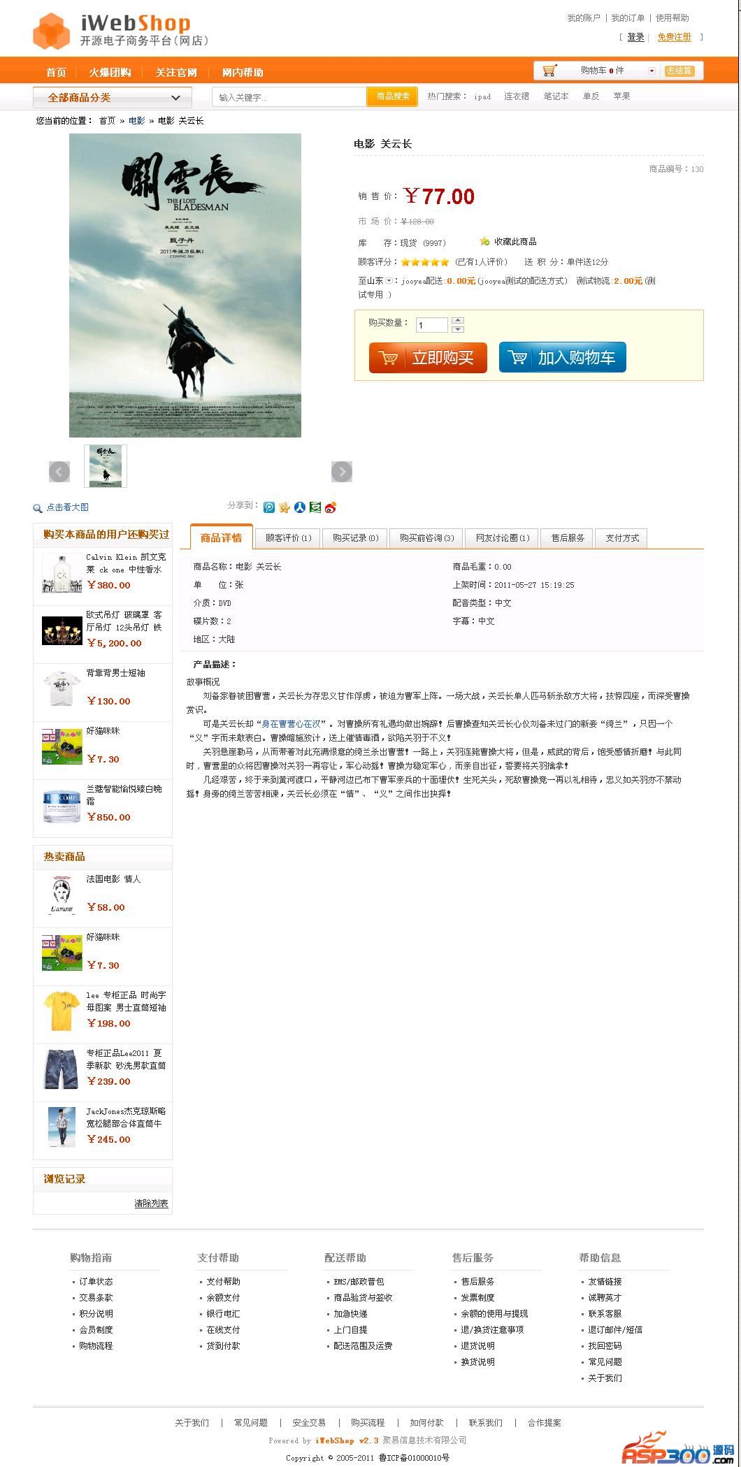 作为开源的LAMP网店系统,iWebShop提供了一套轻量级的支持库,这使iWebShop可以轻松部署在虚拟主机上或者单台服务器上。