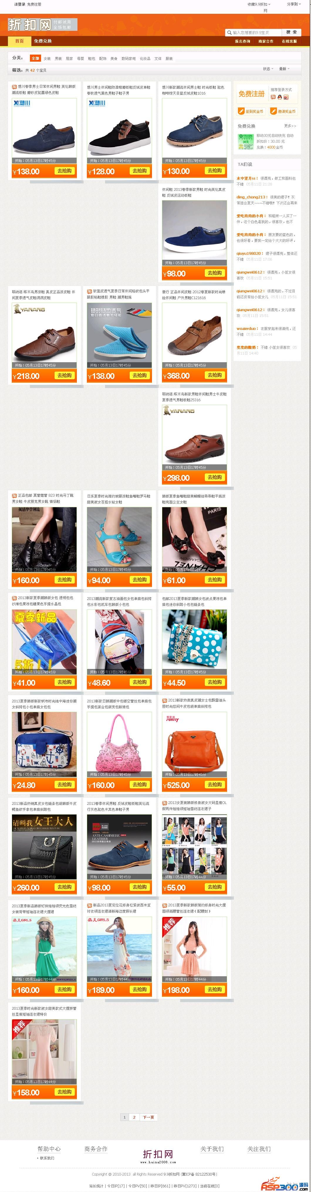 6、模板漂亮,模板采用流行的9.9促销包邮界面形式,美观大方;