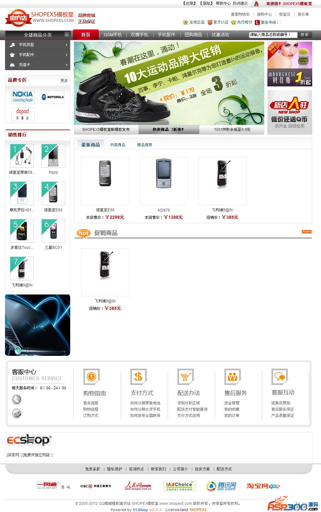 ECSHOP仿QQ官方商城整站源码,基于ECSHOP V2.7.3制作。整体采用黑色。费用漂亮。适合综合,包包,首饰类商城网站使用。安装方法:1.访问:域名/install,按照程序提示进行安装。2.登陆网站后台,然后进行数据还原。3.模板设置中,选择QQSHOW模板4.清空缓存。。。注:还原数据后,网站后台信息:后台地址:admin后台用户名:admin后台密码:www.shopex5.com