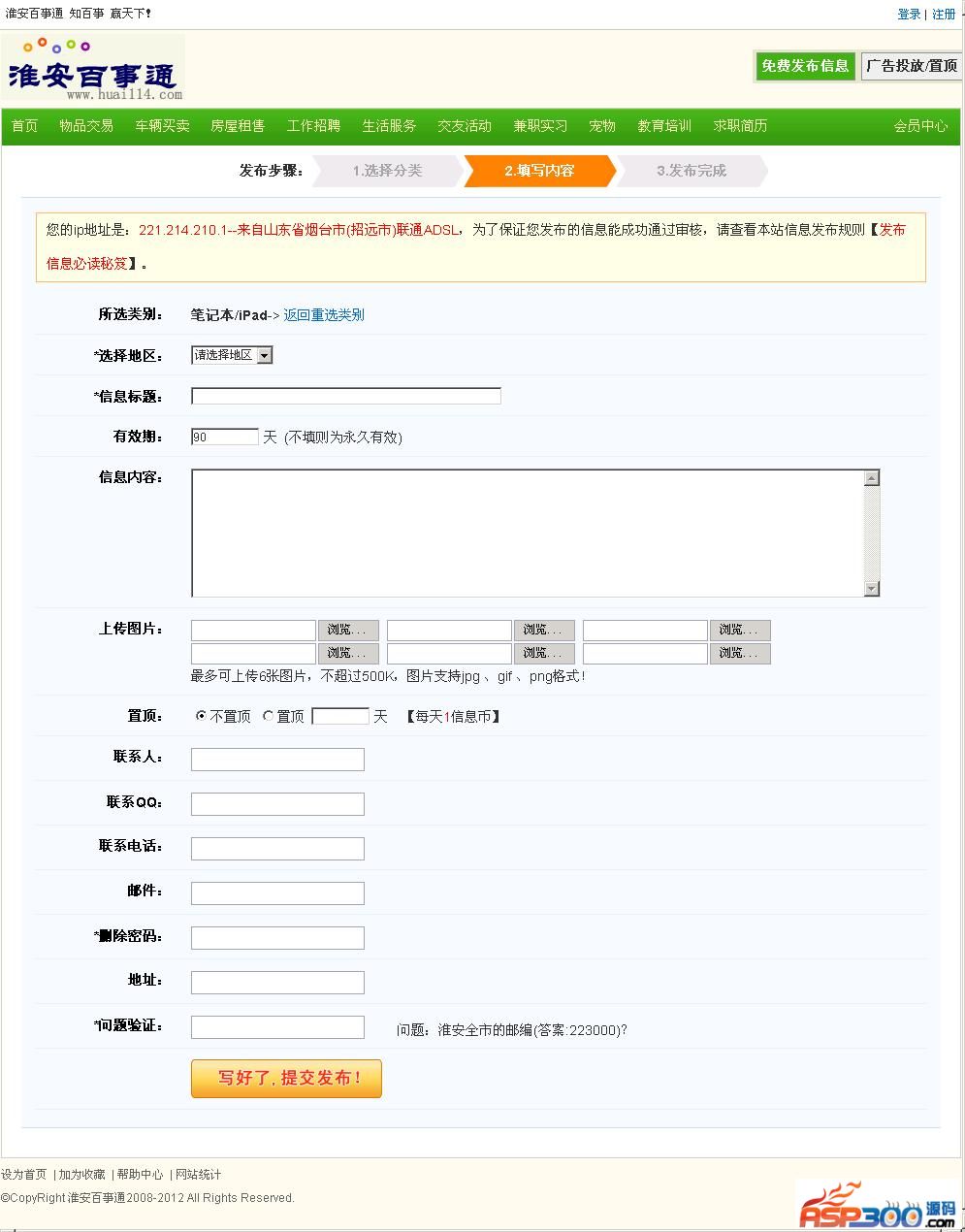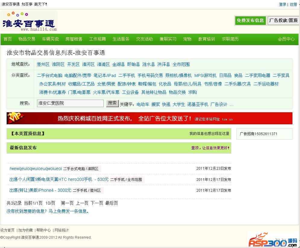 仿58同城地方分类信息整站核心是phpmps 是仿58同城模板,但是只是单城市的不是多城市请见谅。不过作为一个地方分类信息网还是比较好的