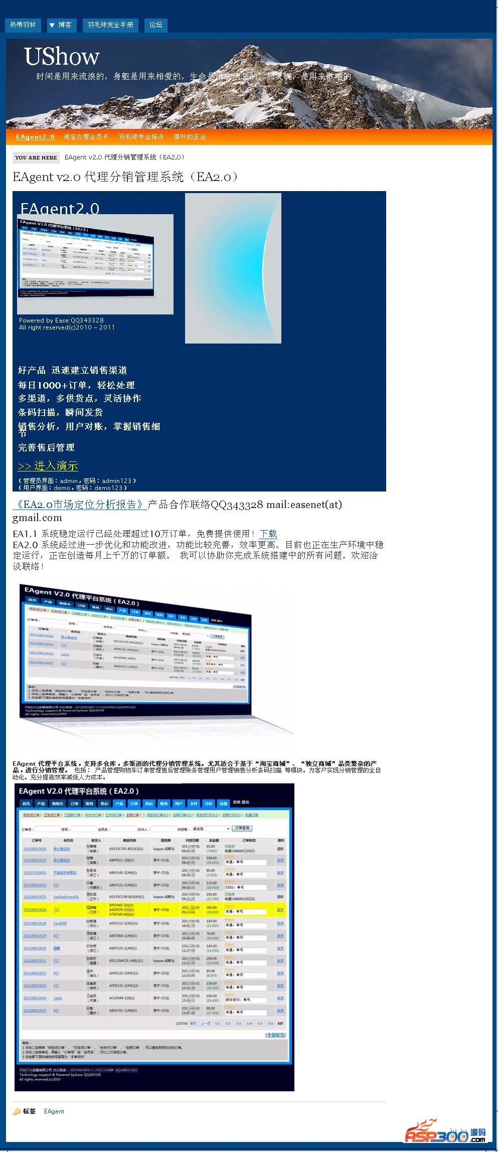 EAgent 代理平台系统,支持多仓库,多渠道的代理分销管理系统。 尤其适合于基于“淘宝商城”、“独立商城”品类繁杂的产品,进行分销管理。