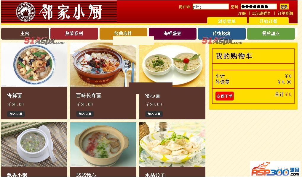 于三层架构的网上在线订餐网站主要实现了一下功能
