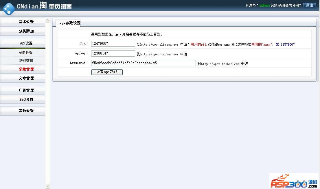 1、请先配置api信息 pid 阿里妈妈有。appkey http://open.taobao.com 申请