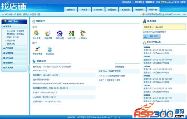 程序采用 .net 4.0+MSSQL 进行开发,全自动应用淘客api,自动转换淘宝客链接,支持批量更新、批量导入,支持网站关键字动态化设置、url伪静态动态设置、广告动态设置(支持各大联盟广告代码发布)、可设置成其它网站广告产品形式展播等功能。 自从免费发布了月赚万元的淘宝客API程序之后,淘宝客API程序得到了广大淘宝客朋友的追捧,短短半个月的时间,下载次数突破了一万次。 感受到大家对淘宝客API程序的热切需要,经过数日的努力,终于修改完成了淘宝客API程序高级版。 希望这版程序能够帮助各位淘宝客朋友月赚万元。相信只要你一直坚持不懈,月赚万元是可以达到的!