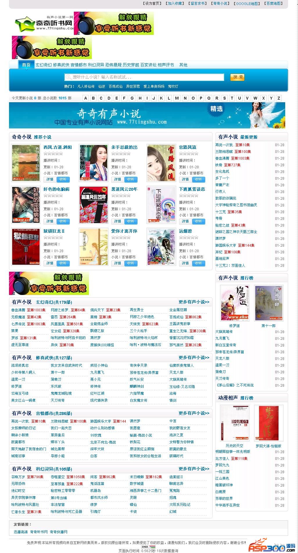 4.修改首页、频道、播放页模版,把链接指向www.77tingshu.com,去站长站(www.chinaz.com)申请自己的统计系统代码放在首页模版里。