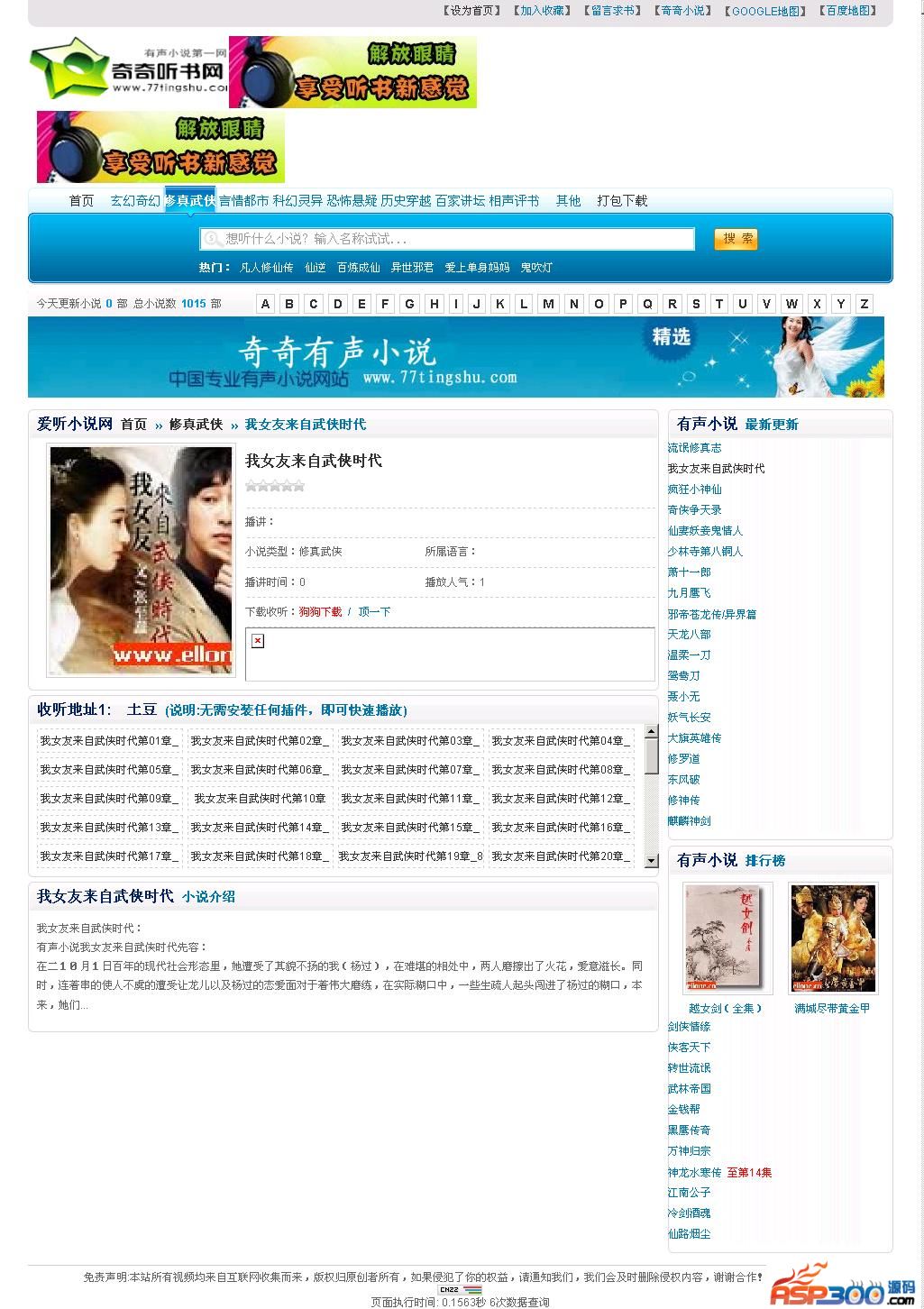 有声小站包含程序、1100多个最新小说数据和添加小说程序。尤其重要的是包含采集规则在内!在本机测试过,上传到空间就可以使用。