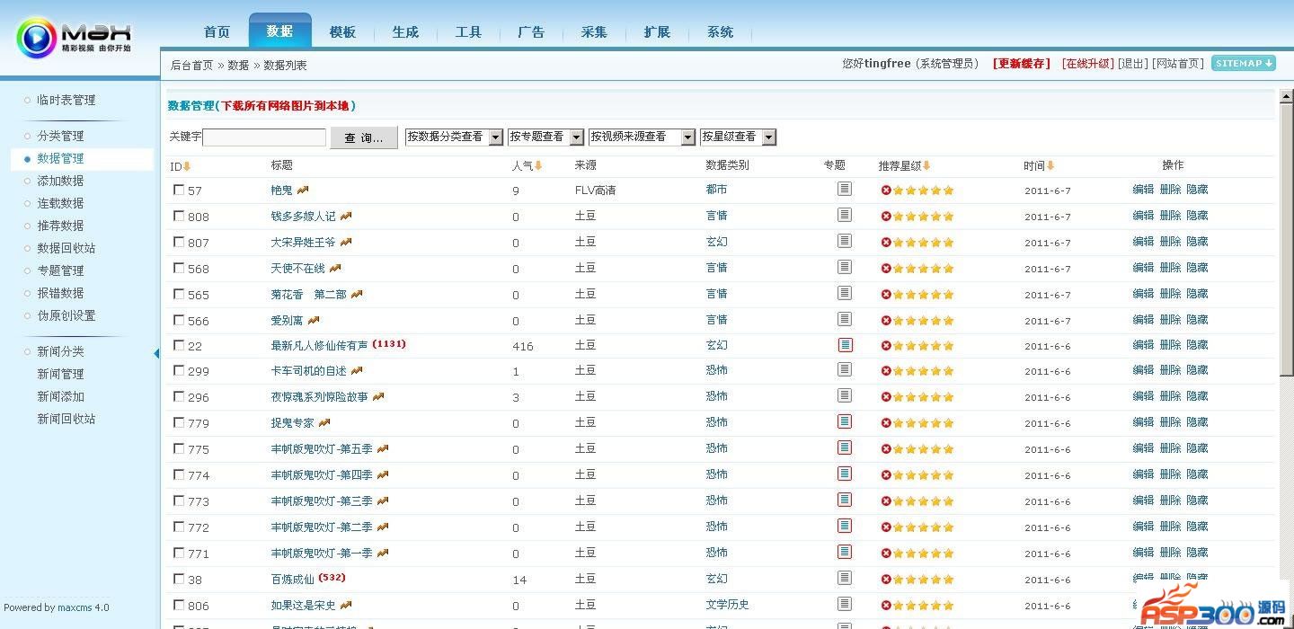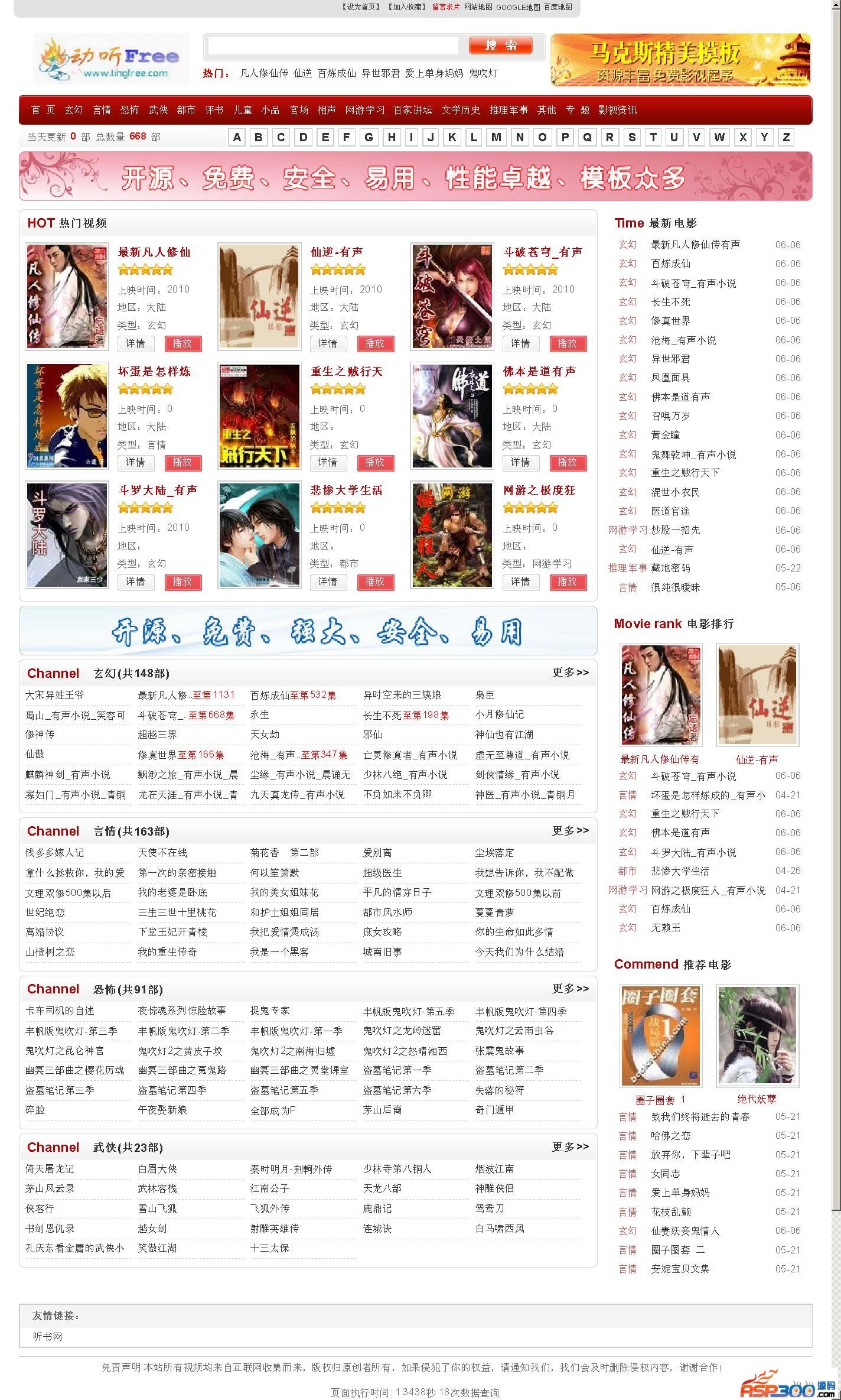 动听free有声小说整站源码包含了全部数据,采用MAXCMS4.0内核,源码完整可用。