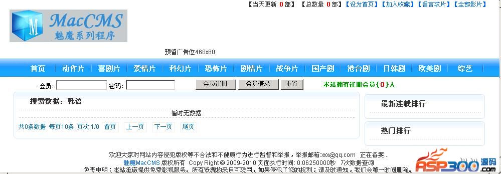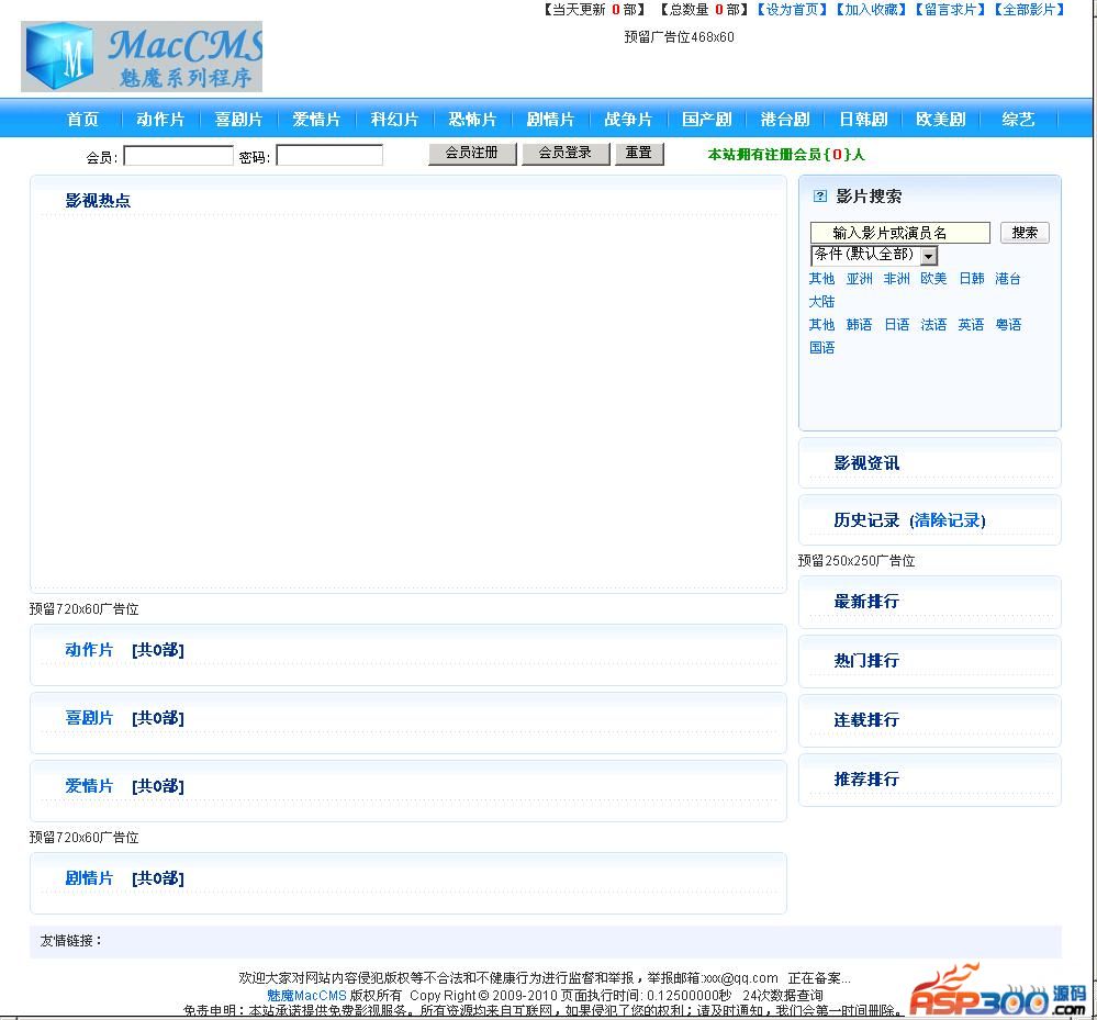 魅魔ASP影视系统,完全开源、强劲功能、卓越性能、安全健壮。超级易用、模板众多、插件齐全、资源丰富。构架稳健,实现平滑升级。