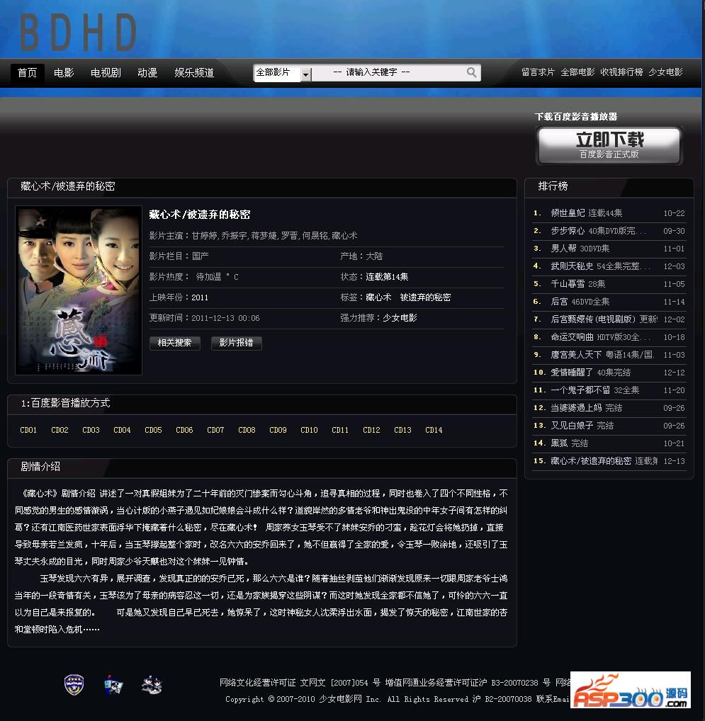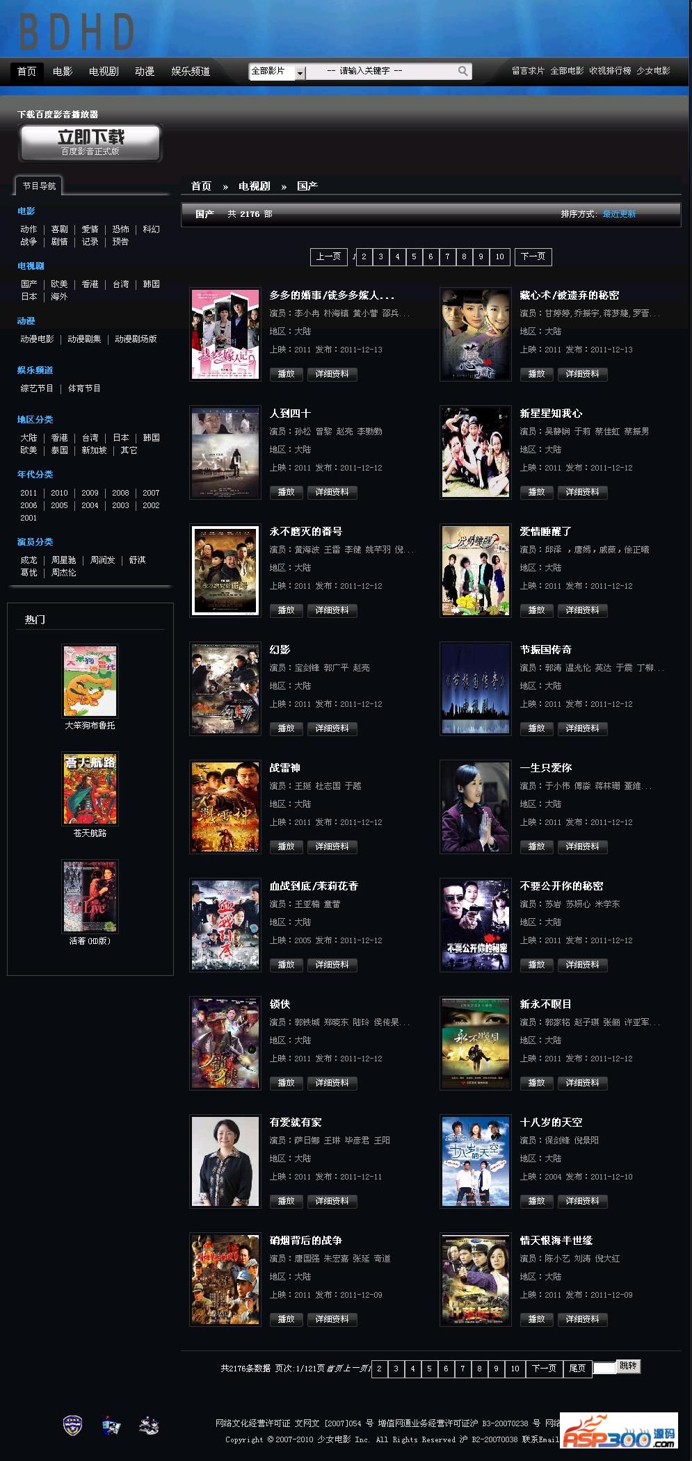 百度影音电影全自动更新小偷程序轻巧方便无后台,特有速度快、不用更新、不占空间、被搜索引擎收录快、、稳定、自定义播放器下载地址、强大的留言板等功能。