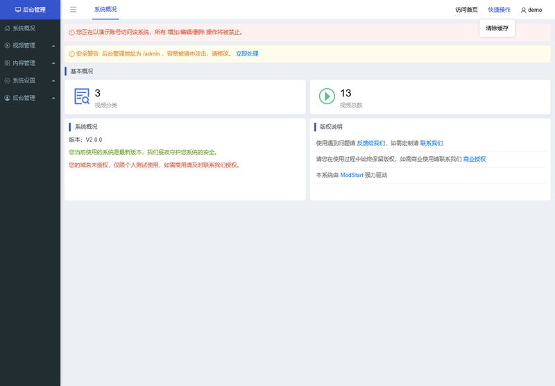 魔众视频管理系统发布v3.2.0版本,新功能和Bug修复累计11项,系统自动升级,页面SEO优化。