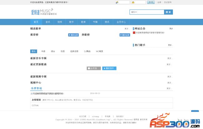 爱频道音乐系统是一款采用php+Mysql开发的影音管理系统,多模型应用,功能更加丰富;支持GBK、UTF-8。