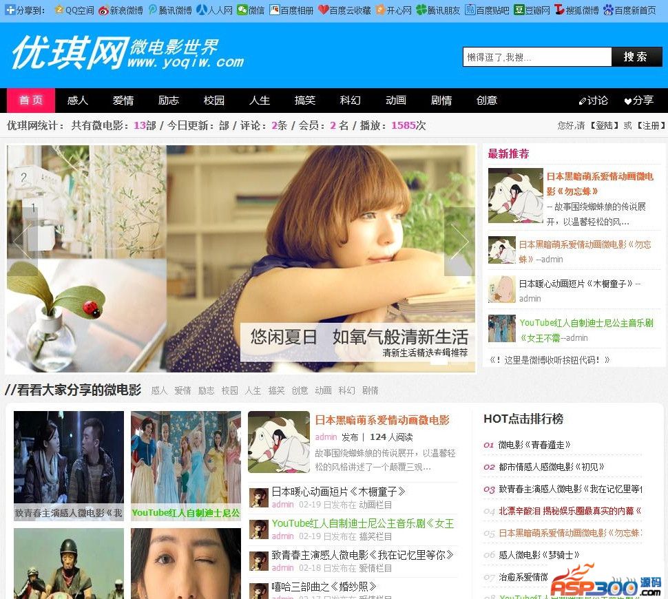大气微电影类织梦分享模板,效果相当的炫酷,相当简洁大气高端,模板简单,全部已数据调用,只需后台修改栏目名称即可