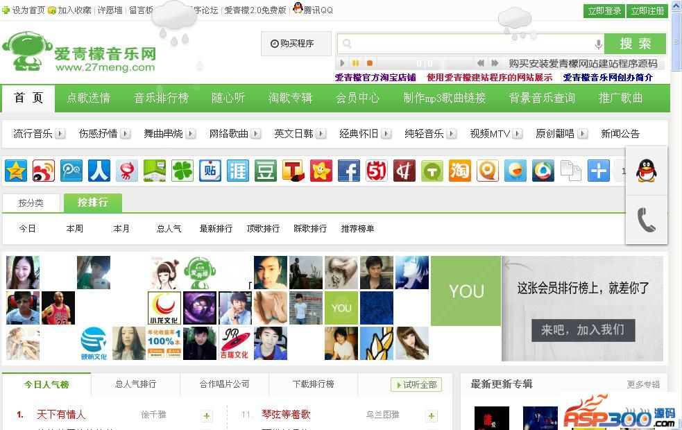 11.最重要的是我们不定期提供更新补丁与小插件美化程序页面。我们的论坛是bbs.27meng.com我们的主要演示网站为是 www.27meng.com 爱青檬音乐网!